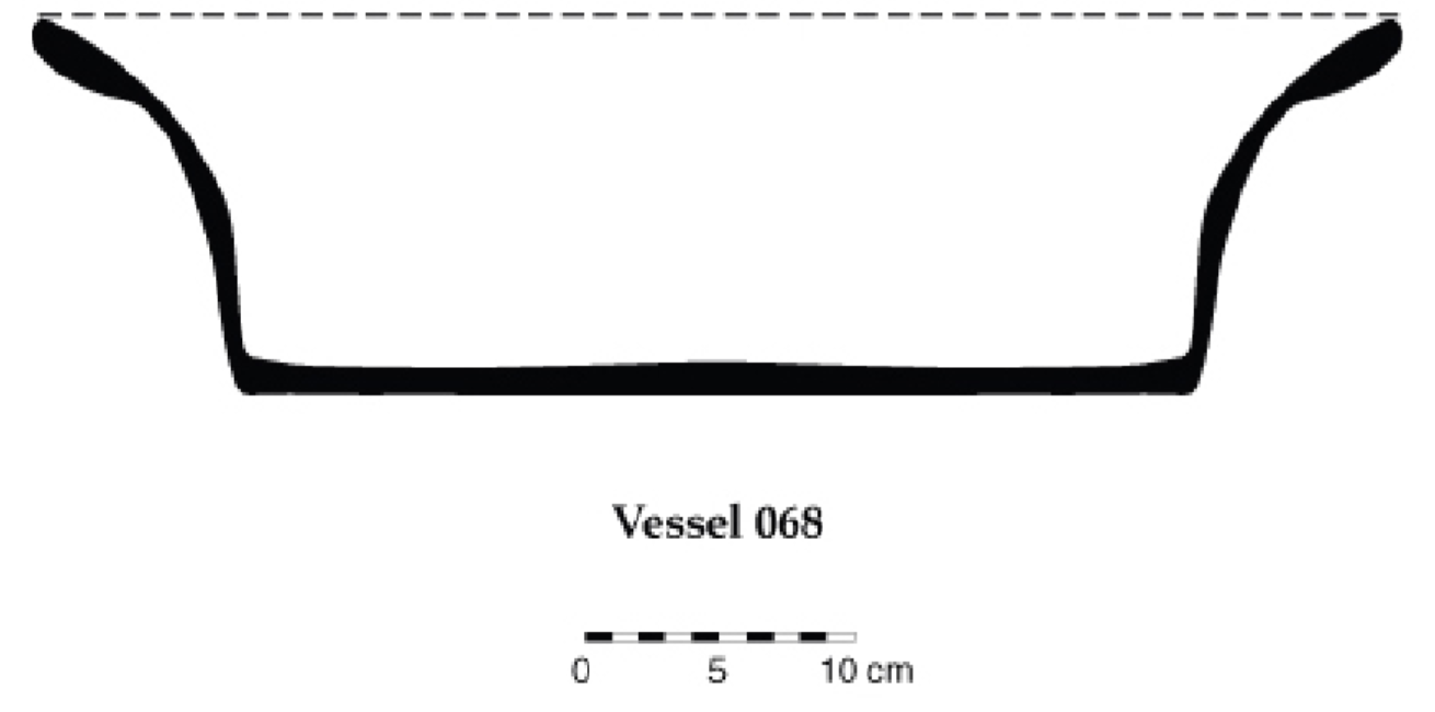 A bowl with outcurved sides, an everted rim, and a direct ovoid lip. The rim is 5.5 cm in width. Vessel paste is reddish yellow (5YR 6/8) and the slip is red (2.5YR 5/8). The base diameter is 35 cm.