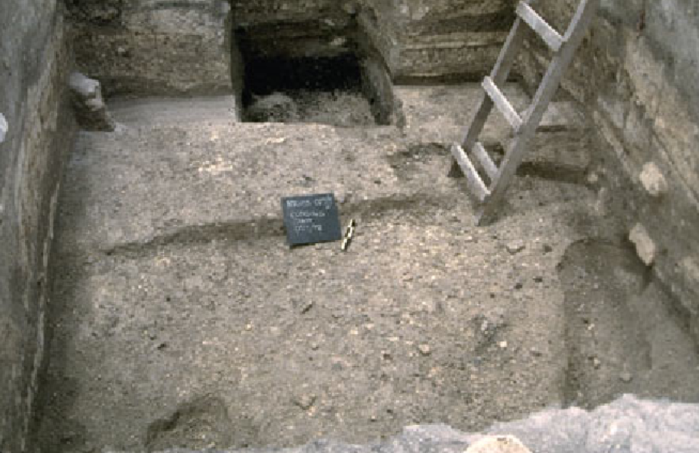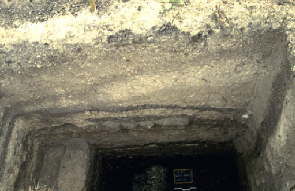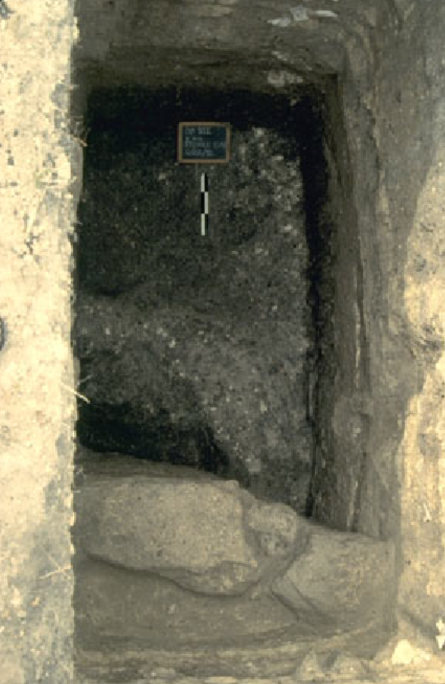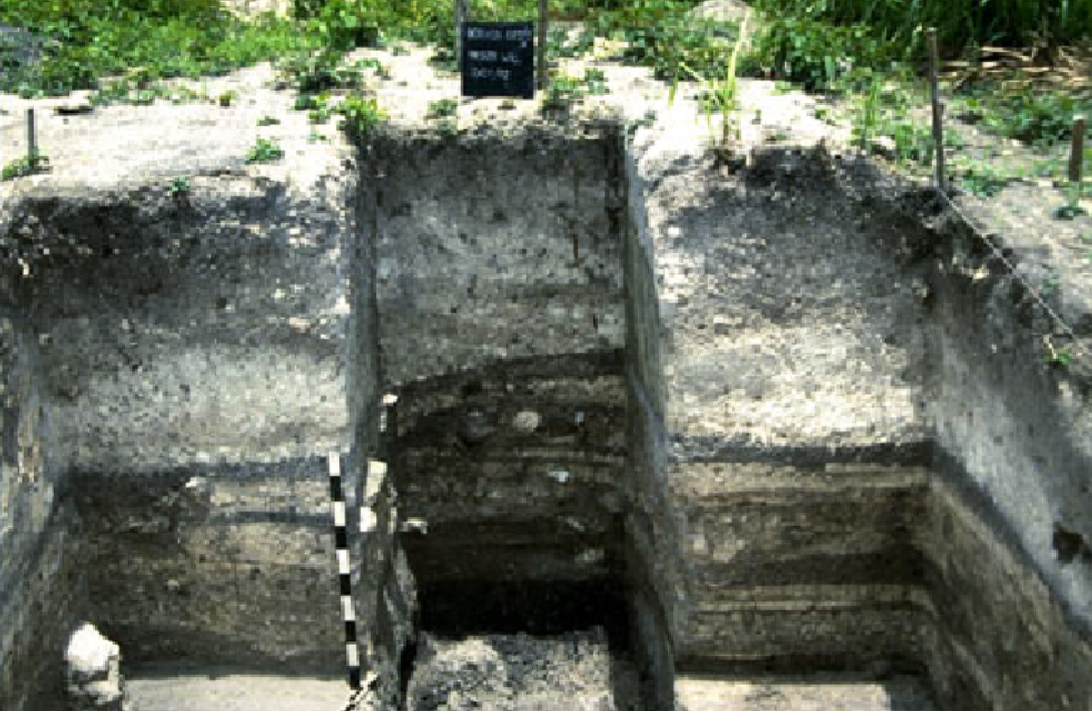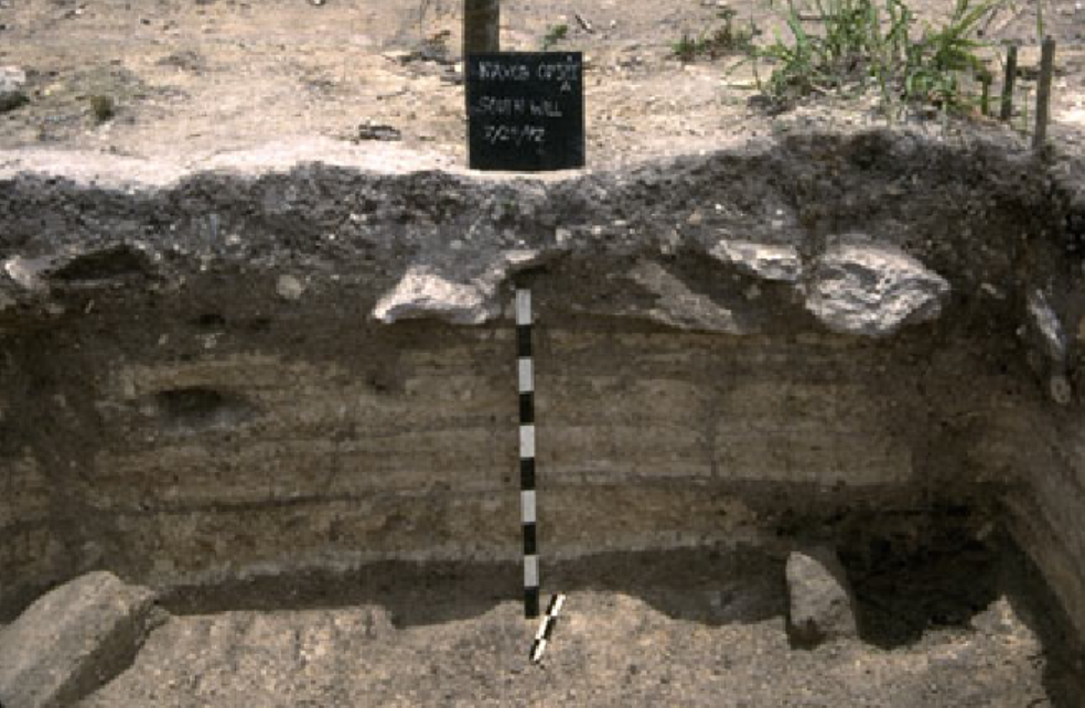 Profile view of north wall of Squares A and B at completion of excavation.