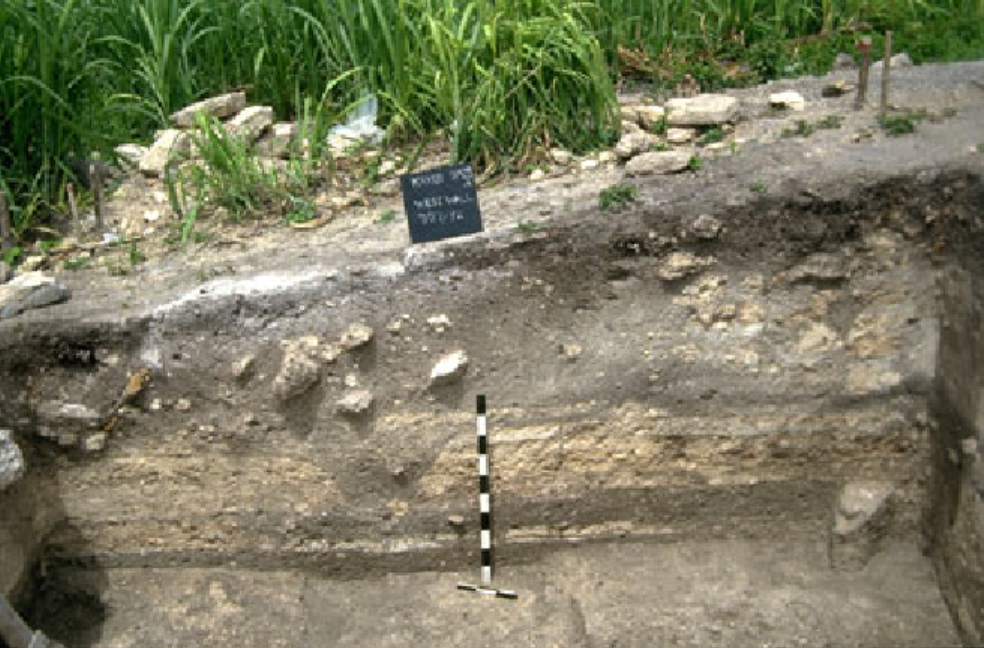 Profile view of south wall of unit (before excavation of Square A).