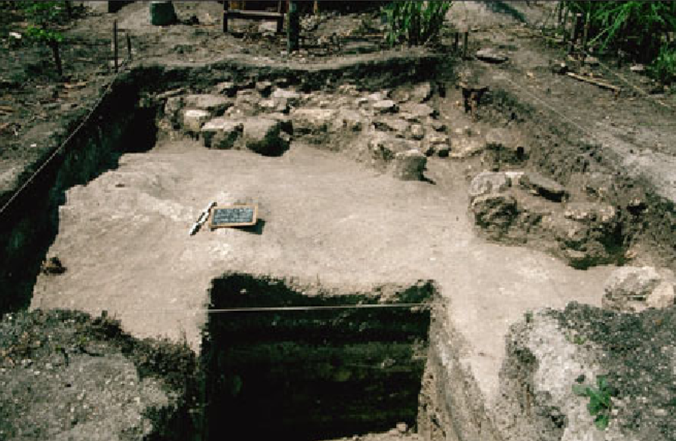 Peccary-footed vessel in situ associated with Burial 7-2.