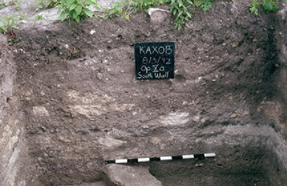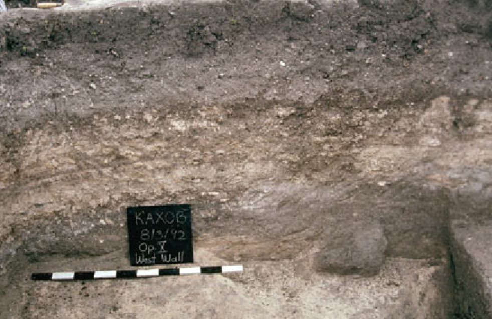 Construction Phase 5 (view to north) showing Burial 10-3 on left. The pit of Burial 10-1 and 10-2 are visible on the right (Burial 10-1 and 10-2 originate from the lower floor of Zone 5 which is shown in photo).