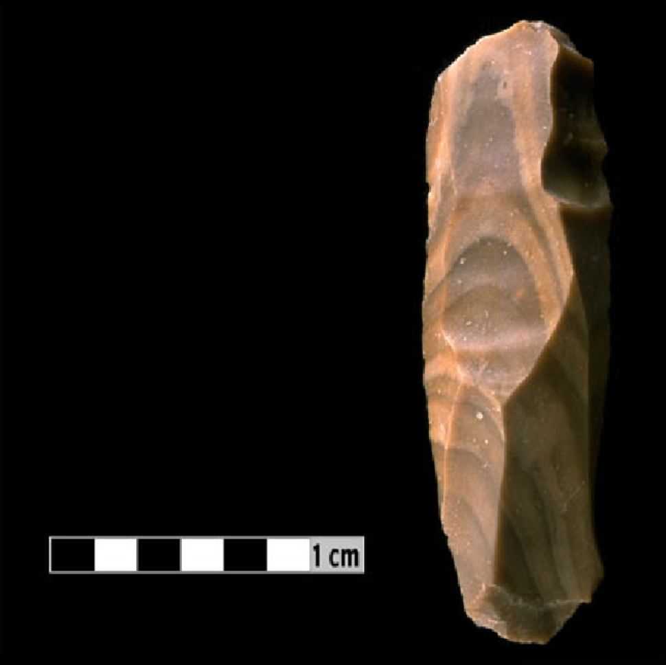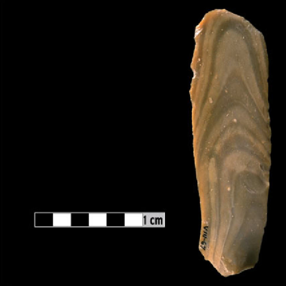 Macroblade of Northern Belizean chert, ventral surface (LT# 0018).