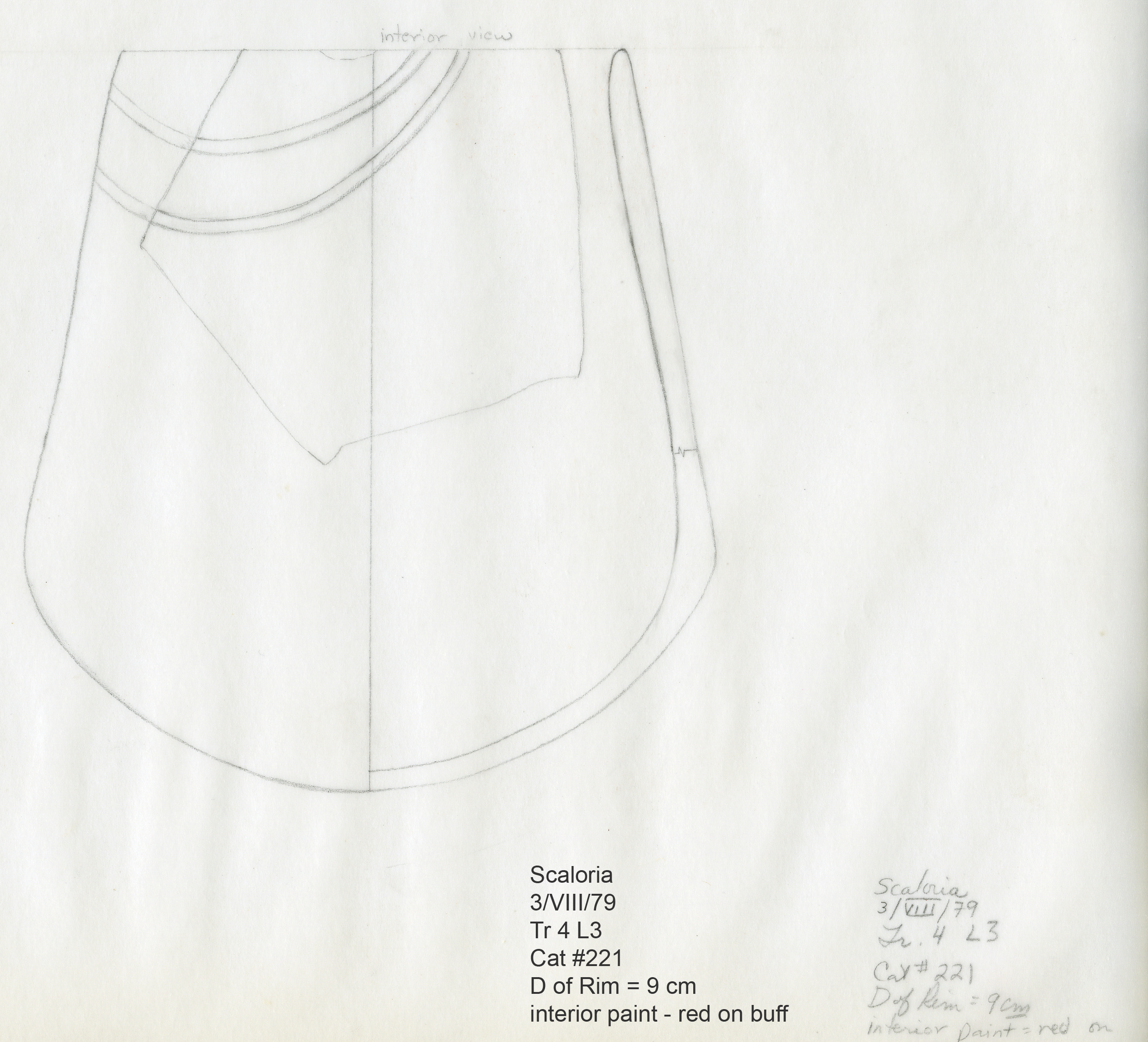 interior paint, red on buff. Museum Case 2? Keywords: 11; 4; buff; interior ; level ; paint; painted; pottery; red; sherd; trench ; sketch; drawing