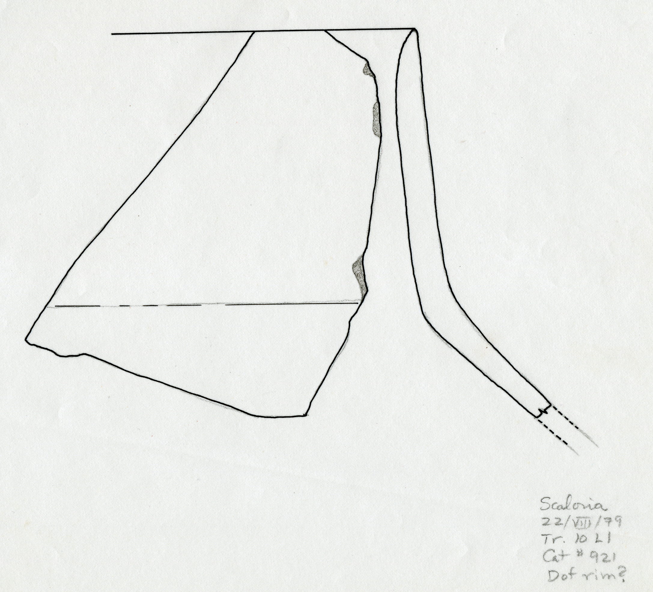 rim sherd, no diameter measurement possible. Keywords: 1; 10; drawing; level; pottery; rim; sherd; sketch; trench